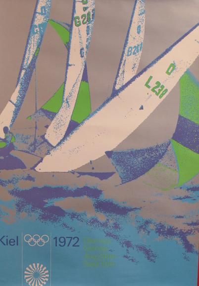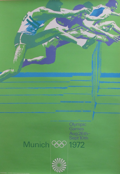 The posters for the Munich Olympics were designed by Otto ‘Otl’ Aicher. Otl Aicher was an illustrious German graphic designer and typographer whose mandate for the Olympic posters included the proviso that the visual identity of the ’72 games should avoid the use of red and black (which were traditionally associated with Nazi Germany). He devised a magnificent set of 24 posters, including the following vintage posters.
