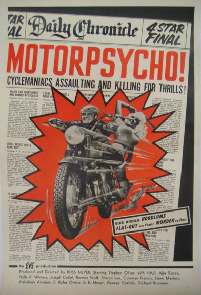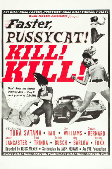 The first of the Billy Jack movies, quickly written to capitalize on the then-popular trend in motorcycle gang movies, which was based on an actual event where members of the Hells Angels were arrested for raping five teenage girls in Monterey, California The Glory Stompers (American International, 1967) One Sheet Faster, Pussycat! Kill! Kill! (Eve Productions, 1965) One Sheet