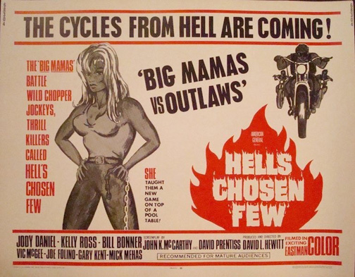Vintage poster for the 1968 bikers movie about a biker who is falsely accused of a murder committed by a drunken sheriff. His Vietnam vet brother doesn’t believe this accusation, so he decides to join the Hell’s Chosen Few biker gang in order to find out the truth.