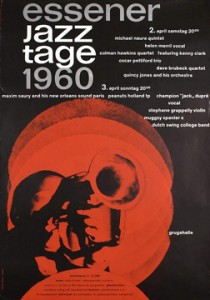 Essen Jazz Festival 1960 – this is a very rare vintage poster designed by Kieser for the Essen Jazz Tage festival in 1960 which featured the great Dave Brubeck and Quincy Jones.