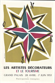 | Additional Information: | Original vintage poster “Les artistes décorateurs et le tourisme” at the Grand Palais in Paris. Artist: Jean Colin Full lithograph printed in 1953 by Mourlot, Paris. No paper loss and colors are excellent. The poster shows a little wear in the corner from handling. The image would rate an A- instead of great. The image features a modern style compass with the starts printed in a few directions and the N,E,W,S all shown slightly askew. A beautiful modern design that would be great for any office. “Les artistes décorateurs et le tourisme” at the Grand Palais in Paris Imp.Mourlot Paris. is an Original Lithograph Vintage Poster; it is not a reproduction., and in very good condition. No tears. No paper loss No damage. |