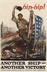 | Additional Information: | Original World War 1 poster: hip-hip! Another Ship - Another Victory A construction worker is handing onto a flag pole showing the completion of another ship. A large American flag flows behind him and over the shipyard. Original poster; linen backed. United States Shipping Board Emergency Fleet Corporation. Rawls p. 184 Hip-hip! : another ship -- another victory United States Shipping Board Emergency Fleet Corporation Artist: George Wright Dimensions: 59.75 x 40 in. Published Forbes, Boston This is an Original Lithograph Vintage Poster; it is not a reproduction. This poster is professional acid-free conservation mounted, linen backed, and in very good condition. |
