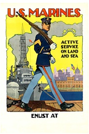 U. S. Marines Active Service on Land and Sea World War I Advertising Poster
